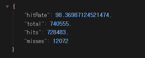 - 부하 테스트 걸기 전 캐시 miss와 hit 갯수를 알아보기 위해 CacheStats 작성